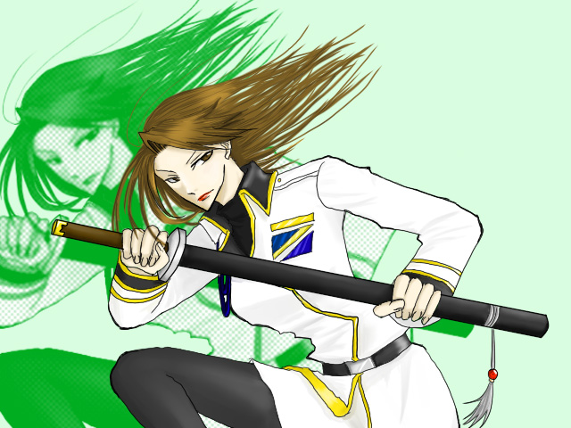 勇ましい感じで一枚。 描き終わった後に多分気付いたと思うのですが、これじゃ剣は抜きづらいよね(苦笑) でも、お気に入りの一枚です。